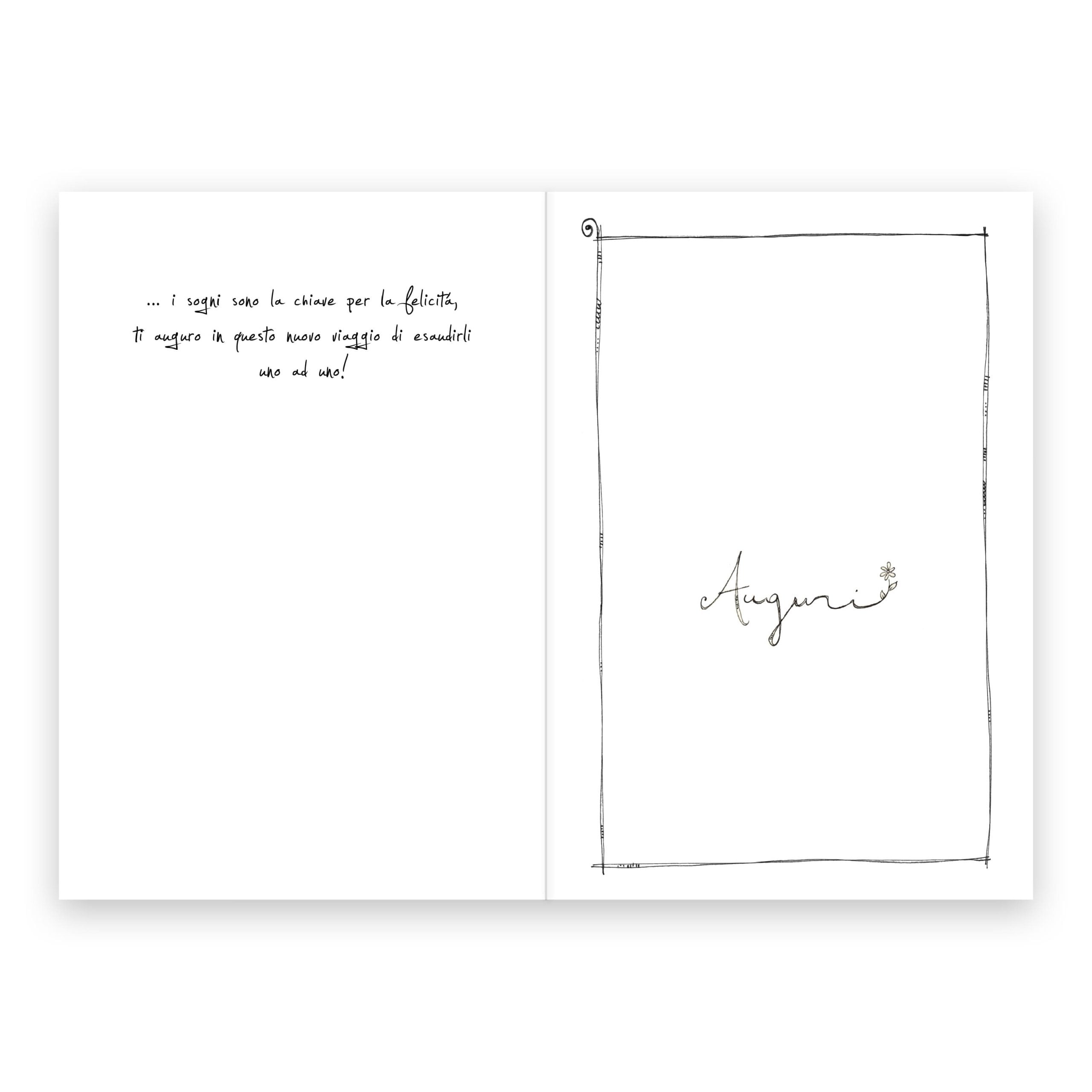 All’interno l’augurio di esaudire i propri sogni ad uno ad uno e spazio per la dedica.