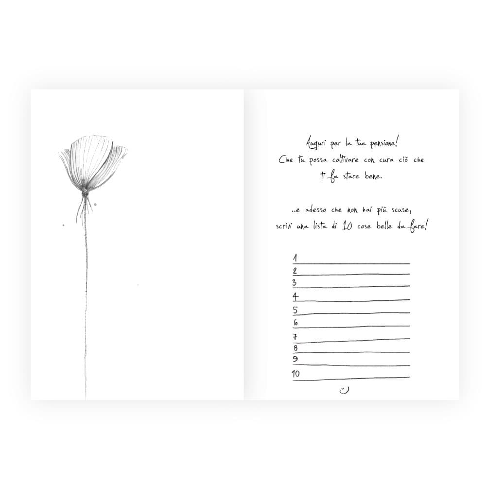 “Auguri per la tua pensione! E’ il momento di coltivare i propri sogni! ..e adesso non hai più scuse, scrivi una lista di 10 cose belle da fare!”