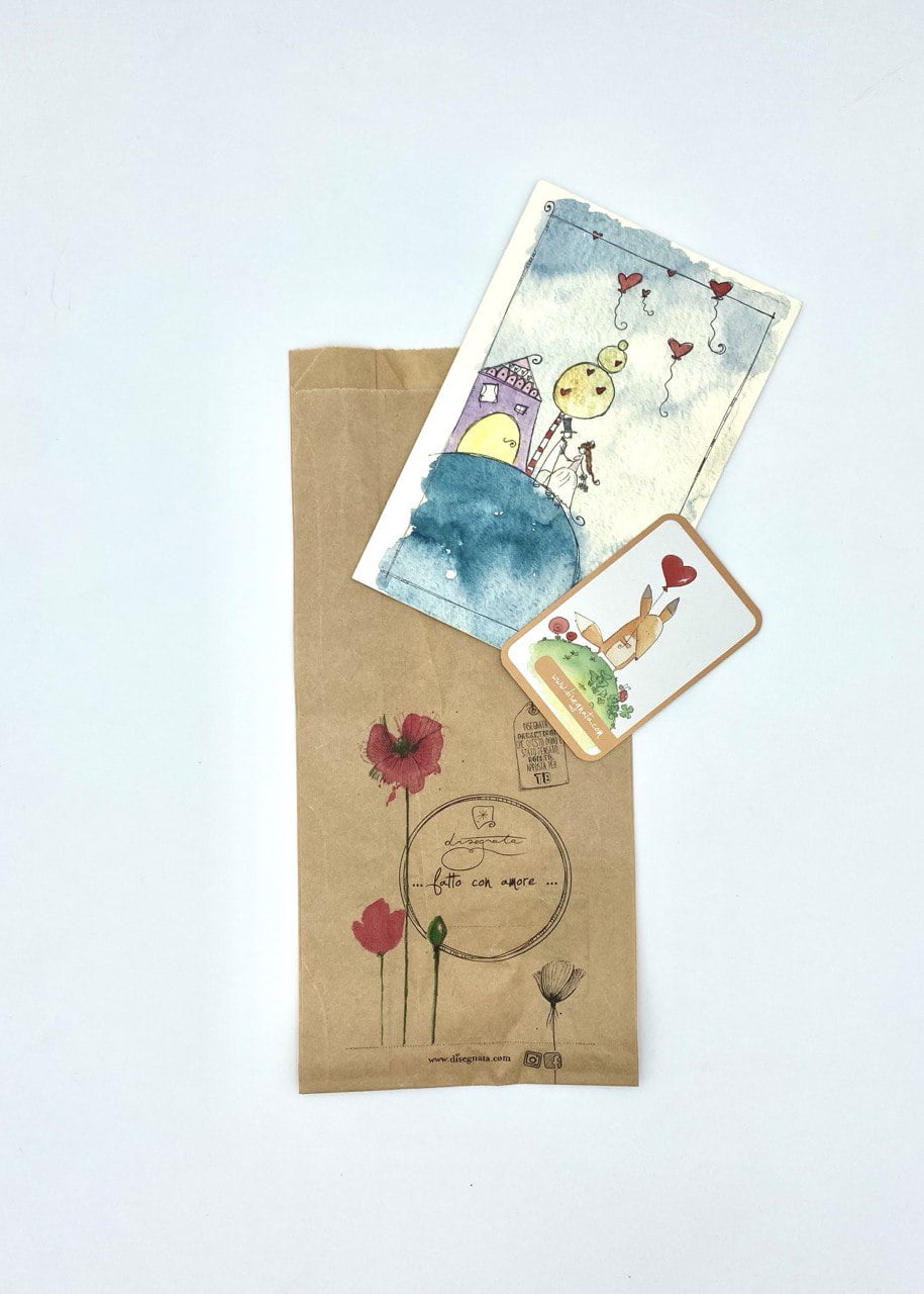 Acquistare la nostra carta regalo Disegnata per fare il pacchetto in autonomia, se vuoi puoi anche aggiungere una delle nostre eco-palline.