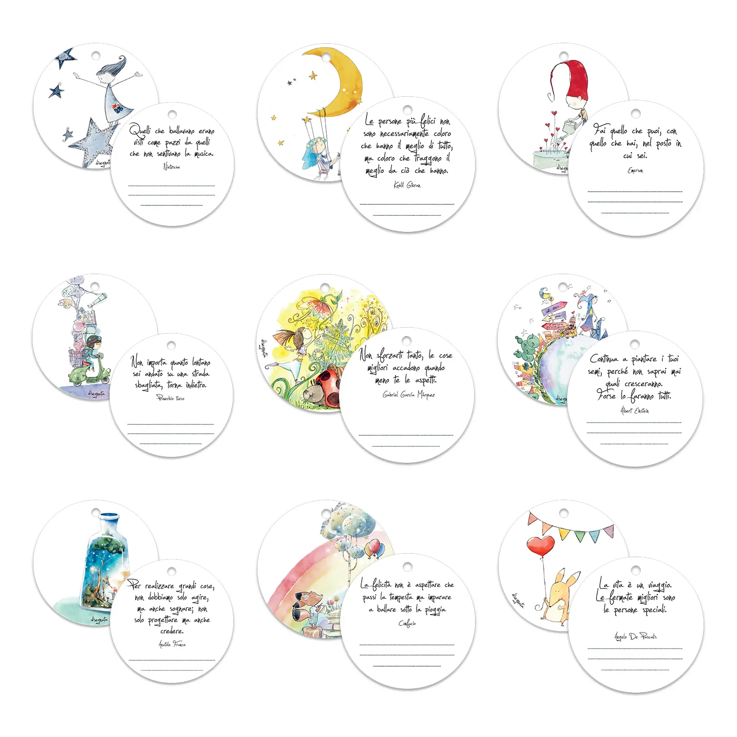 Sul retro oltre l’aforisma ci sono due linee su cui è possibile scrivere personalmente un nome, un augurio, una data.