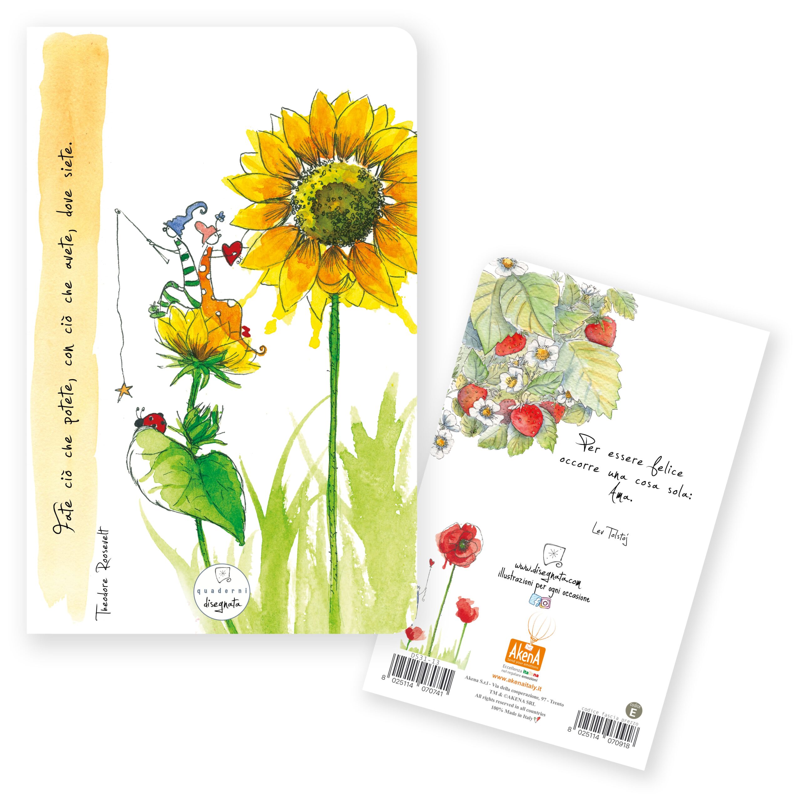 • Quaderno formato A6 con aforismi di grandi autori e illustrazioni di Sara Pucci e Guido Olivieri