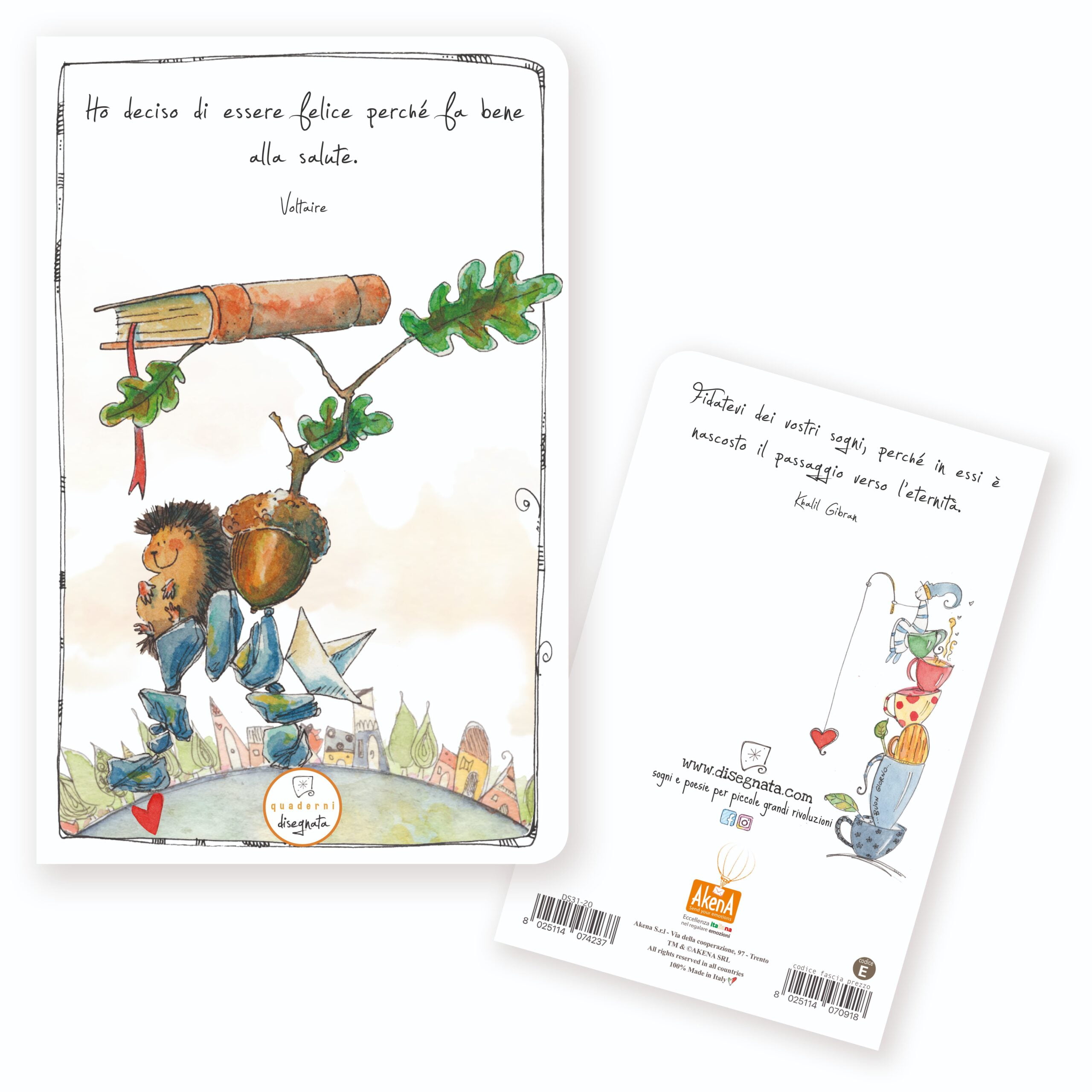 • Quaderno formato A6 con aforismi di grandi autori e illustrazioni di Sara Pucci e Guido Olivieri