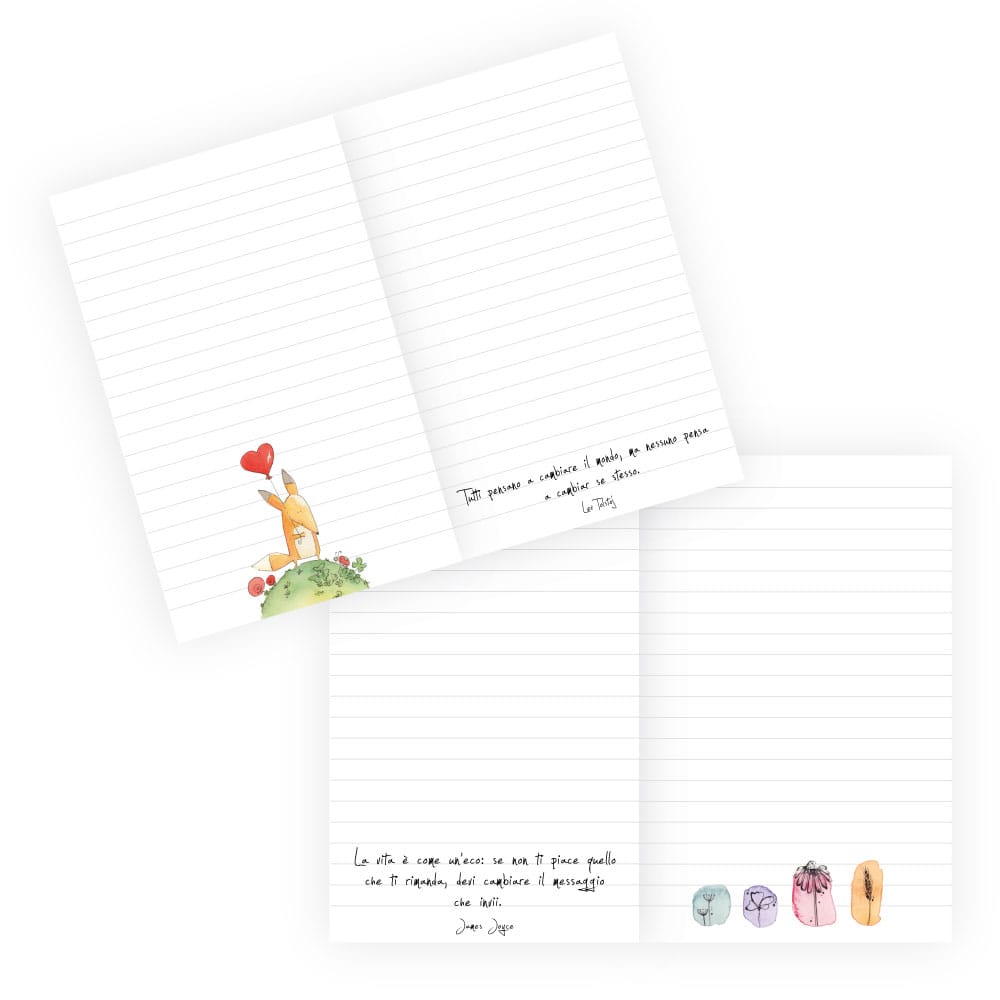 • Quaderno formato A6 con aforismi di grandi autori e illustrazioni di Sara Pucci e Guido Olivieri