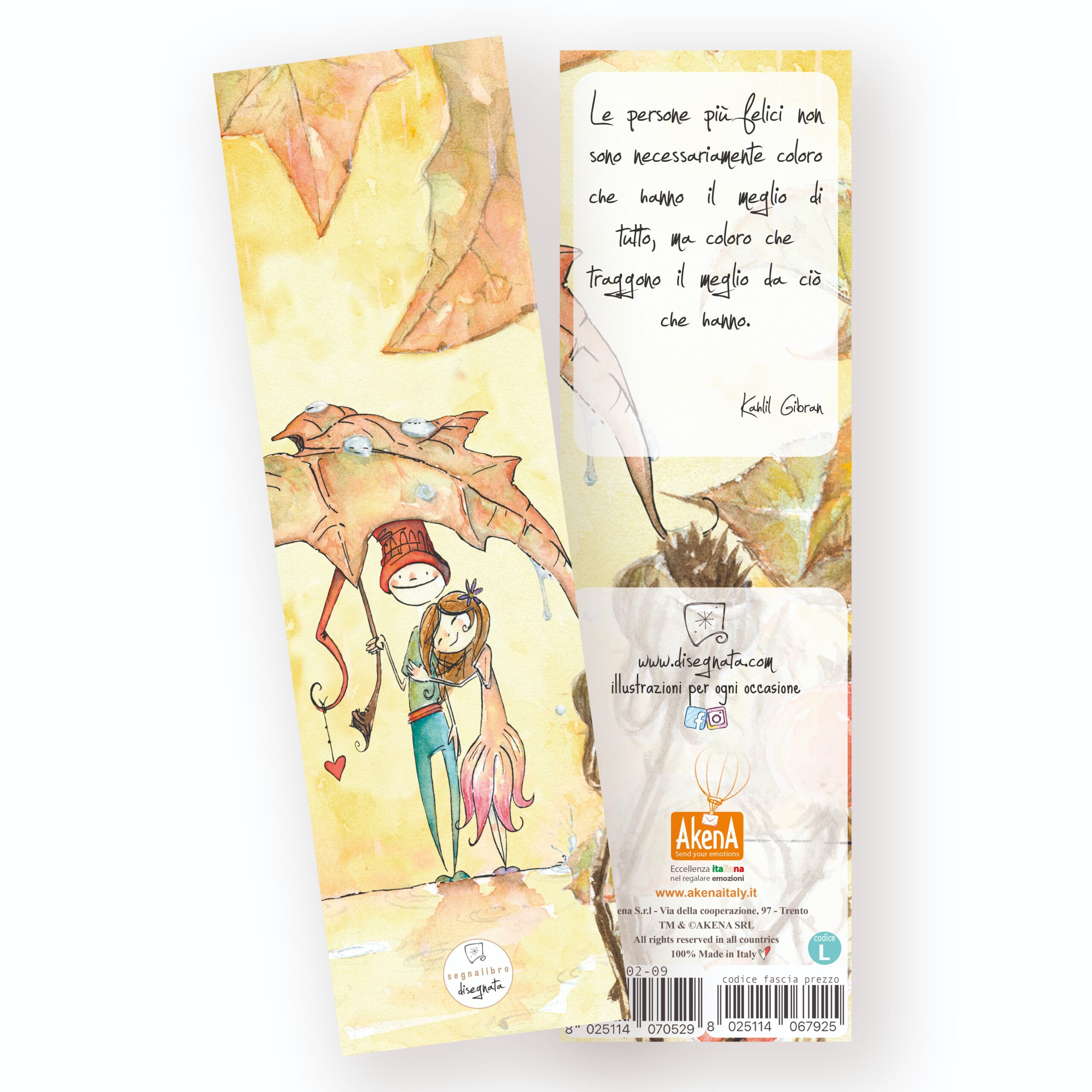 Segnalibro illustrato ad acquerello con citazione, stampato fronte-retro a colori, su carta ecologica.