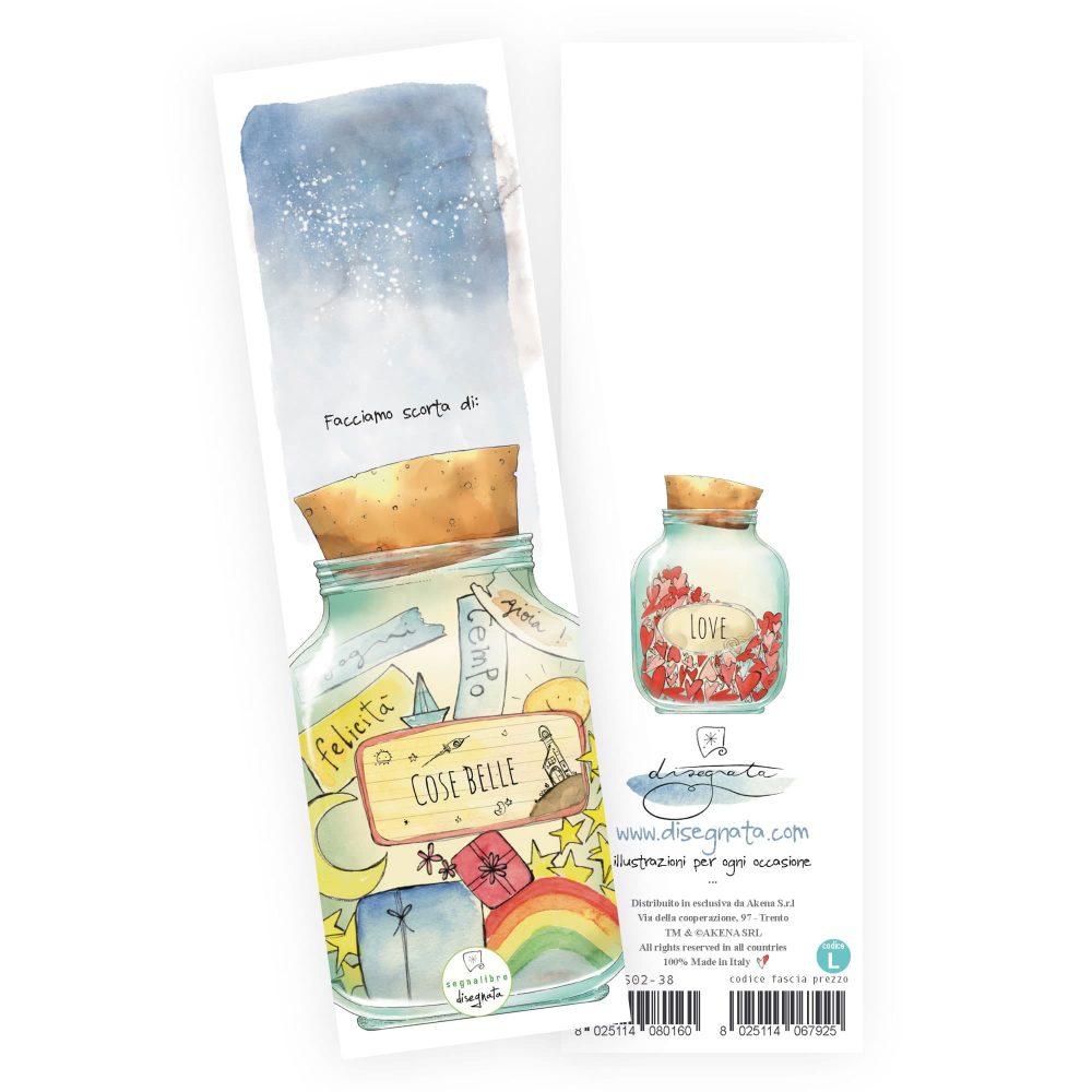 Segnalibro illustrato ad acquerello con citazione, stampato fronte-retro a colori, su carta ecologica.