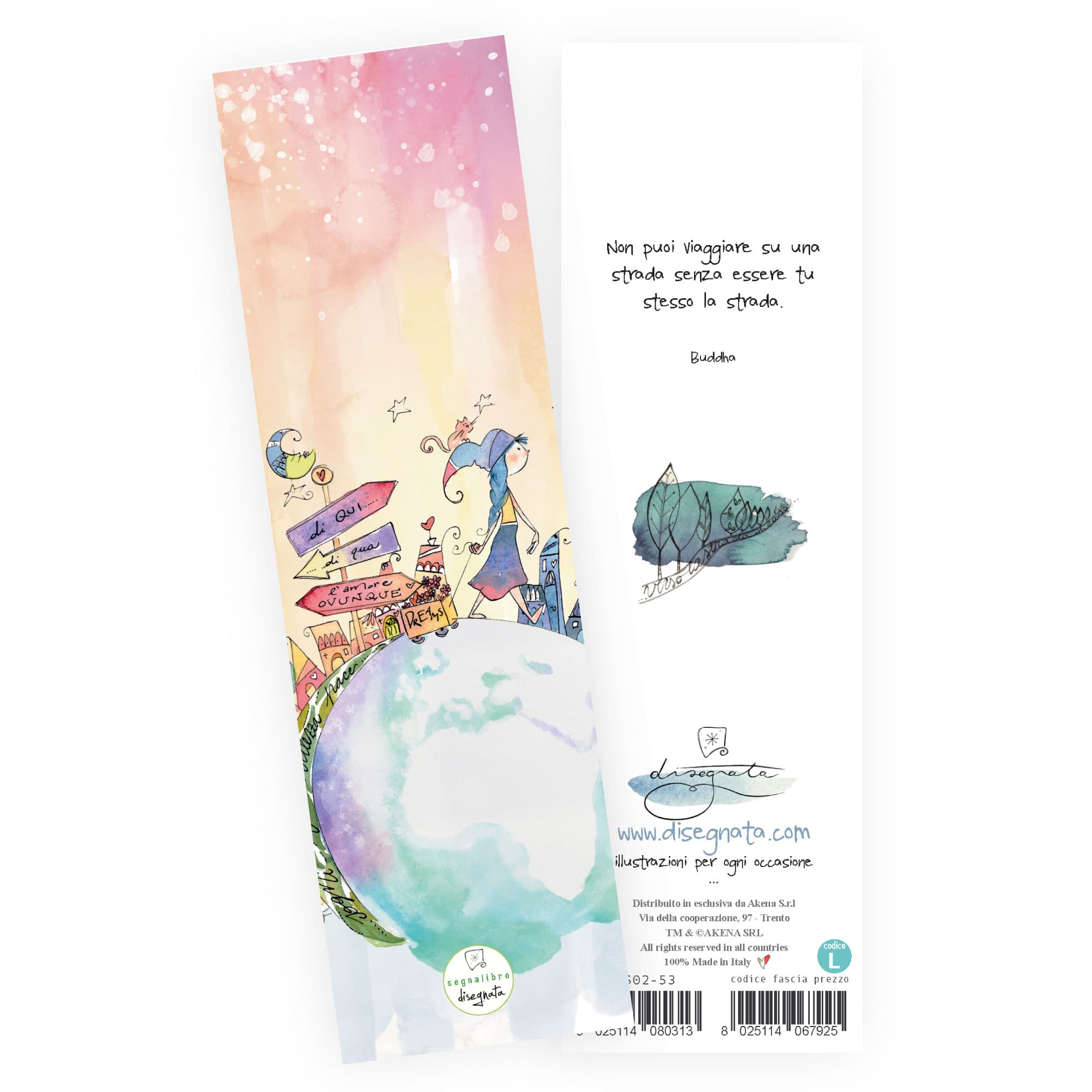 Segnalibro illustrato ad acquerello con citazione, stampato fronte-retro a colori, su carta ecologica.