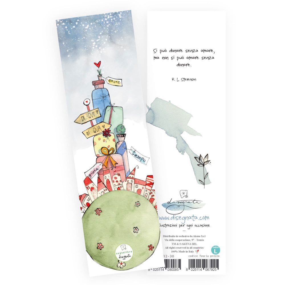Segnalibro illustrato ad acquerello con citazione, stampato fronte-retro a colori, su carta ecologica.