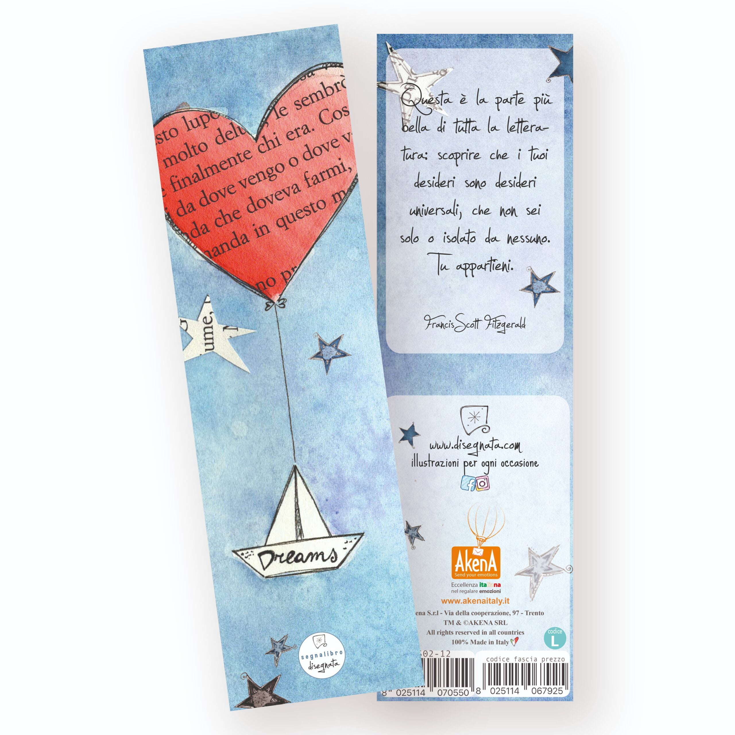 Segnalibro illustrato ad acquerello con citazione, stampato fronte-retro a colori, su carta ecologica.