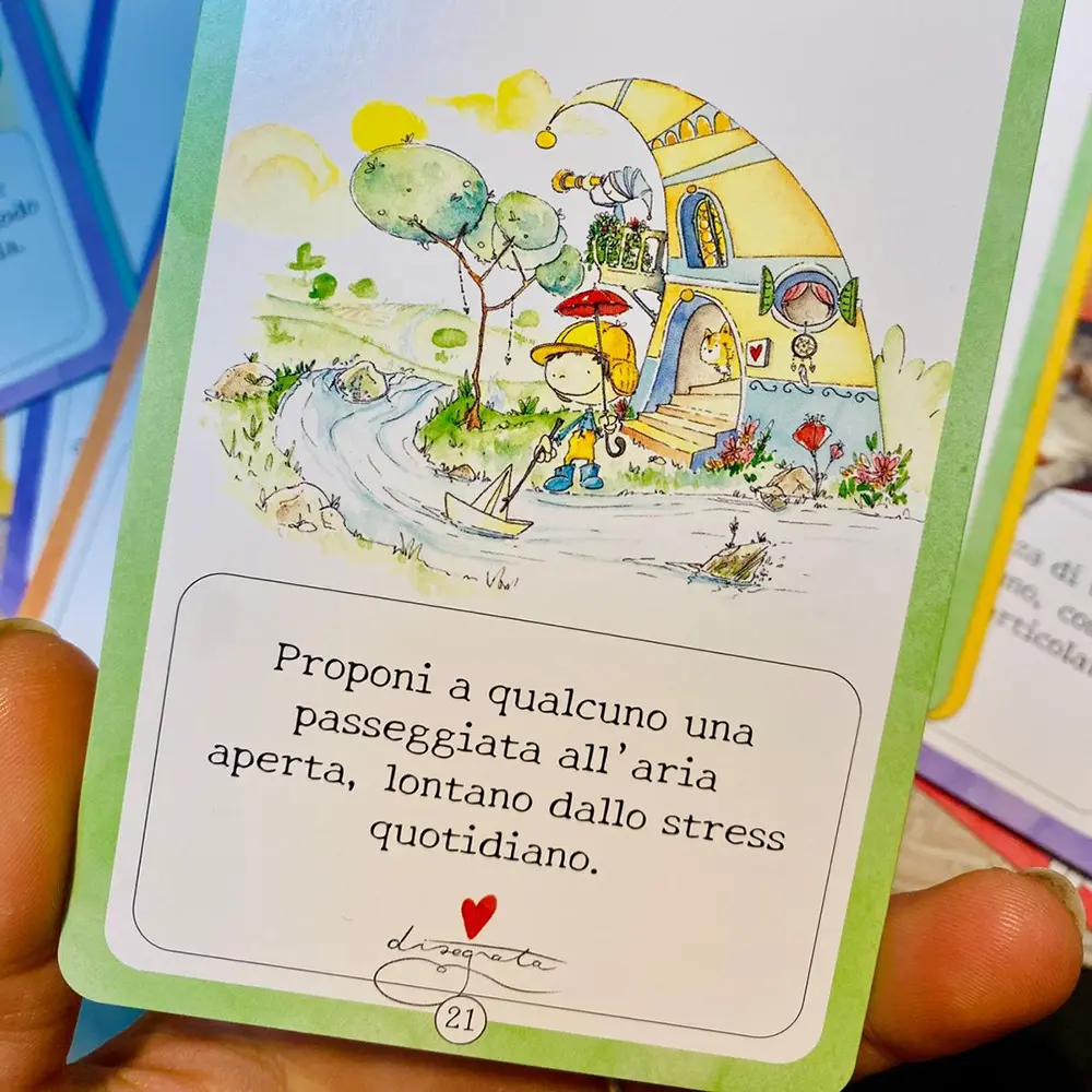 Ogni carta propone un piccolo gesto da fare durante la giornata.
