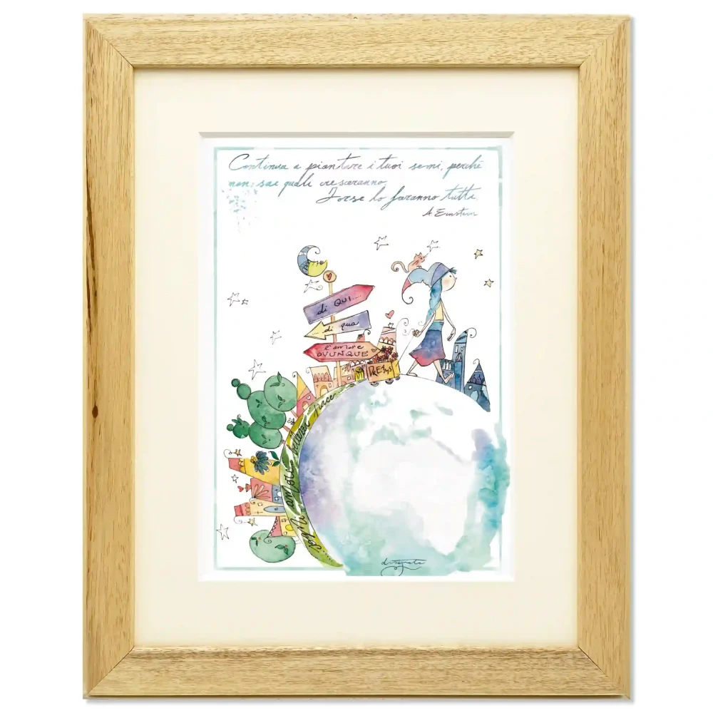 - Stampa d’artista riprodotta su carta 100% ecologica FSC misto impreziosita con lamina d’argento.